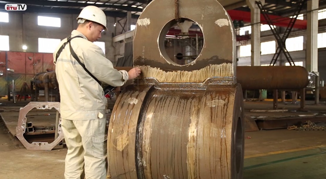 CMEC承接荷蘭TMS公司設計總包海上風電樁管安裝船機械臂安全卸載在張家港重裝碼頭